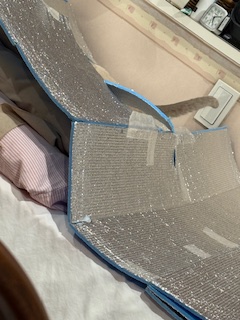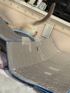 もぞもぞと入ります。(ベッドの上に保温シートを置いています。うんち対策)